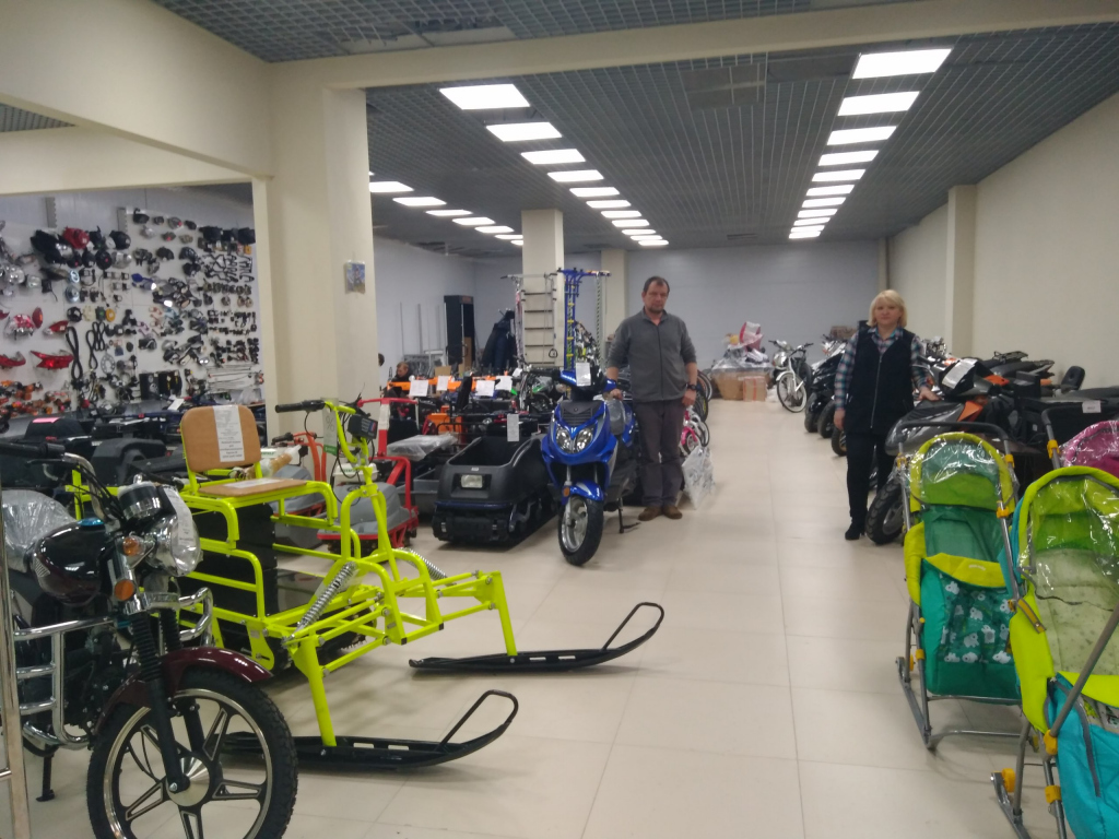 Здесь же вы сможете порадовать и суровых мужчин: в отделе продается мототехника и экипировка.