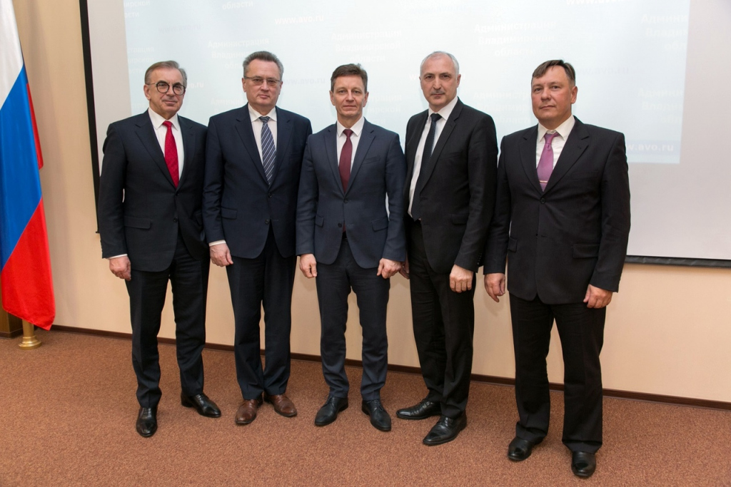 Владимир Сипягин вместе с представителями немецкой строительно-инжиниринговой компании «Гистекс ГмбХ» Францем Штайгером и Сергеем Гиричем, а также торгово-экономическим представителем Владимирской области при Торговом представительстве РФ в ФРГ Виктором Ильским и послом по экономическим вопросам федеральной земли Мекленбург – Передняя Померания Андреем Зверевым.
