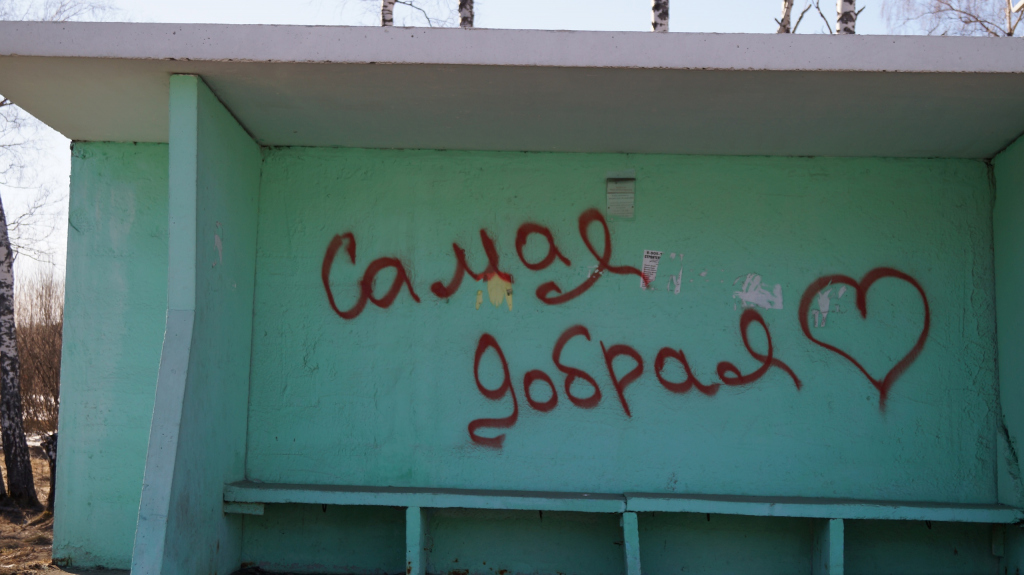 Во Владимирской области неизвестный расписал ряд остановок общественного транспорта Владимирской области. Надписи оставили на автодороге М7 а Ковровском и Вязниковском районах.