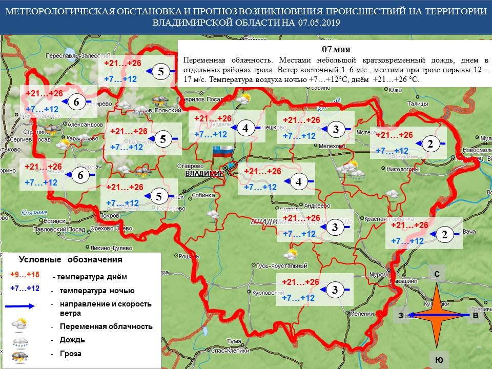 По данным Владимирского центра по гидрометеорологии и мониторингу окружающей среды завтра во Владимире будет переменная облачность. Местами небольшой кратковременный дождь, днем в отдельных районах гроза.