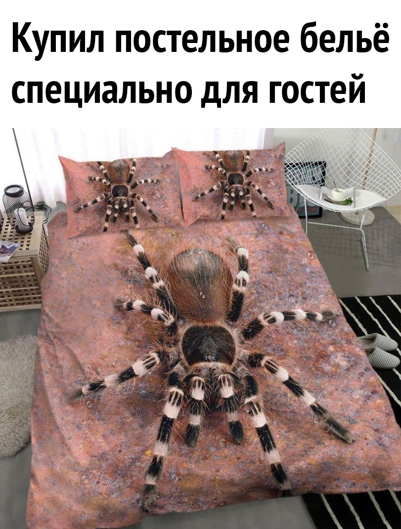 И вновь о гостях. Постельное белье называется "Привет арахнофобам"