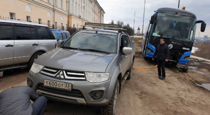 Сегодня в группе Вконтакте 4WD Vladimir появилось видео спасения автобуса из грязи возле здания Владимиро-Суздальского музея-заповедника. Водители внедорожников не впервые приходят на помощь другим водителям. Причем денег за свою помощь эти неравнодушные ребята не берут.