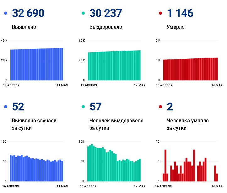 Также за прошедшие сутки умерли 2 человека (всего 1146), выздоровели 57 пациентов (всего 30 237).