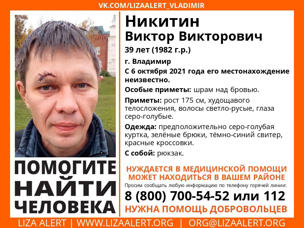 Пропал Никитин Виктор Викторович 1982 г.р. (39 лет), г. Владимир