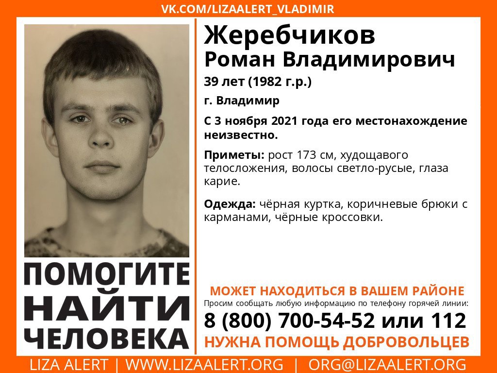 Пропал Жеребчиков Роман Владимирович 1982 г.р. (39 лет), г. Владимир.