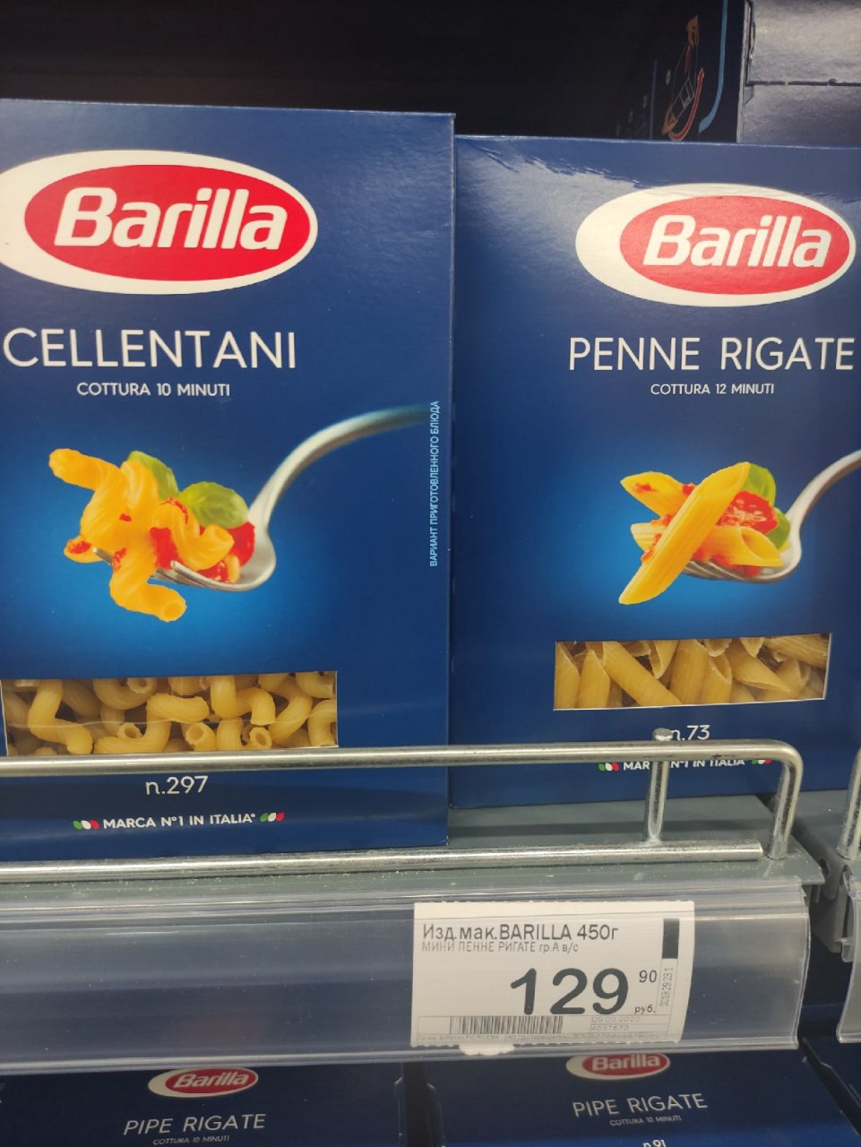 6. Пачка макаронов (450 г). Да, продукт с итальянским именем. Но цена - за гранью. К слову, отечественные макаронные изделия недалеко ушли. Пачка - около 90 рублей.