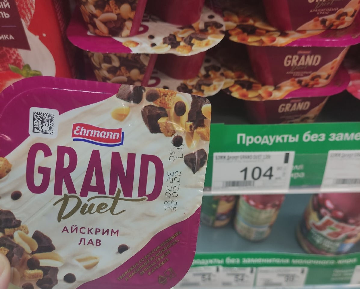 7. Творожный десерт за 104 рубля. Еще недавно по акции эти баночки продавались примерно за 40 рублей. Любопытно, теперь найдутся желающие покупать этот товар?