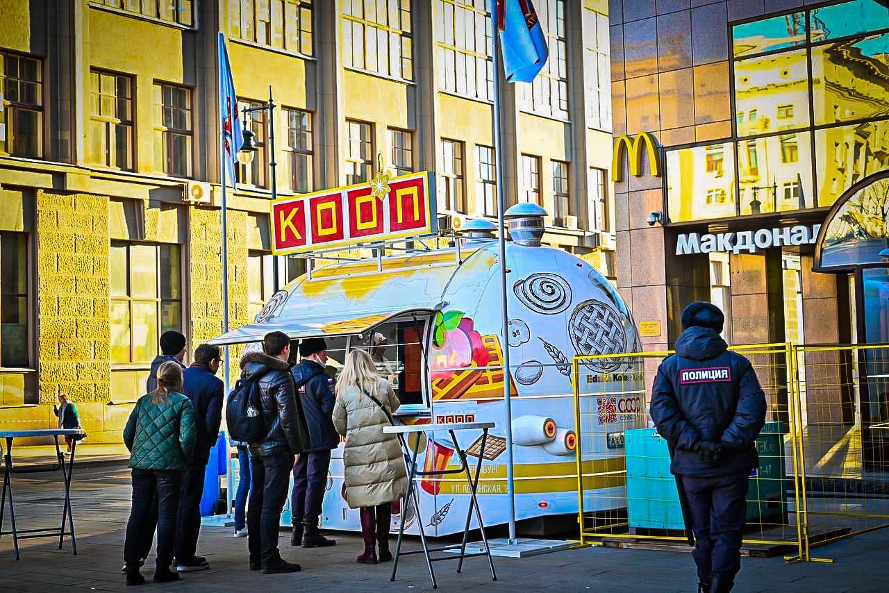 После того, как рестораны сети "Макдоналдс" объявил о временной приостановке своей работы, в центре Владимира появился мобильный пункт продажи ход-догов.
