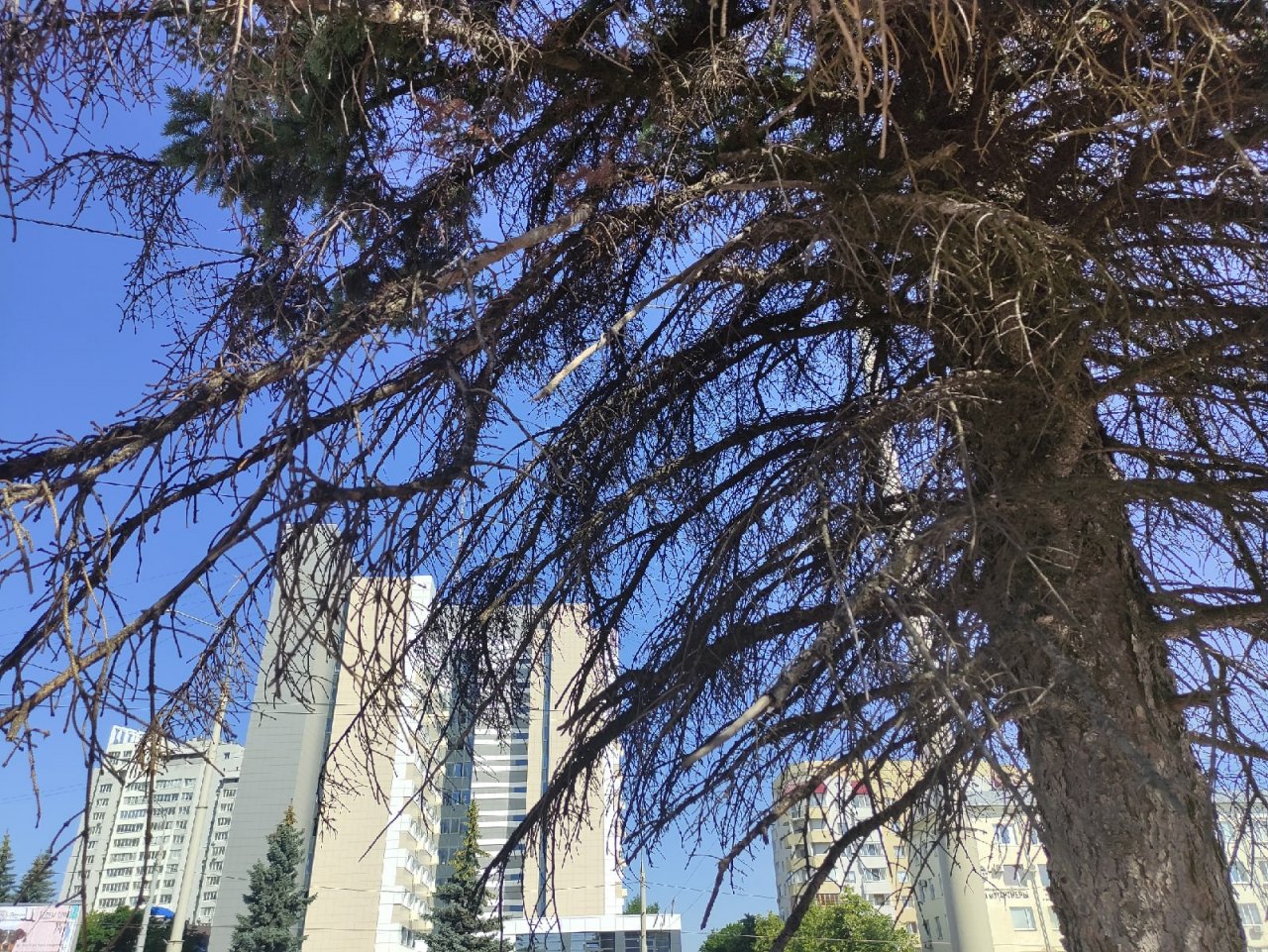 Но в этом году состояние деревьев ухудшилось, две ели стали похожи на настоящий сухостой. И было принято решение об их спиливании.