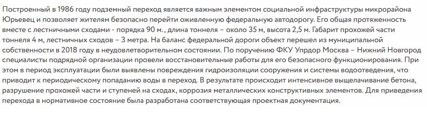 В "Упрдоре" рассказали, что работы полным ходом идут и внутри объекта. С конца августа, когда и был начат ремонт, рабочие разобрали лестничные марши, демонтировали старую напольную плитку, убрали отделку с внутренних стен и потолка, провели пескоструйную обработку. Поверхности подготовили к дальнейшим работам. Сейчас в тоннеле выполняются штукатурные работы.