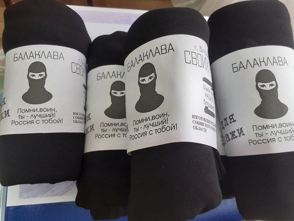 Готовые балаклавы отправляются бойцам на фронт. Отличить их можно по нашивкам с ободряющими словами: "Помни, воин, ты - лучший! Россия с тобой!".