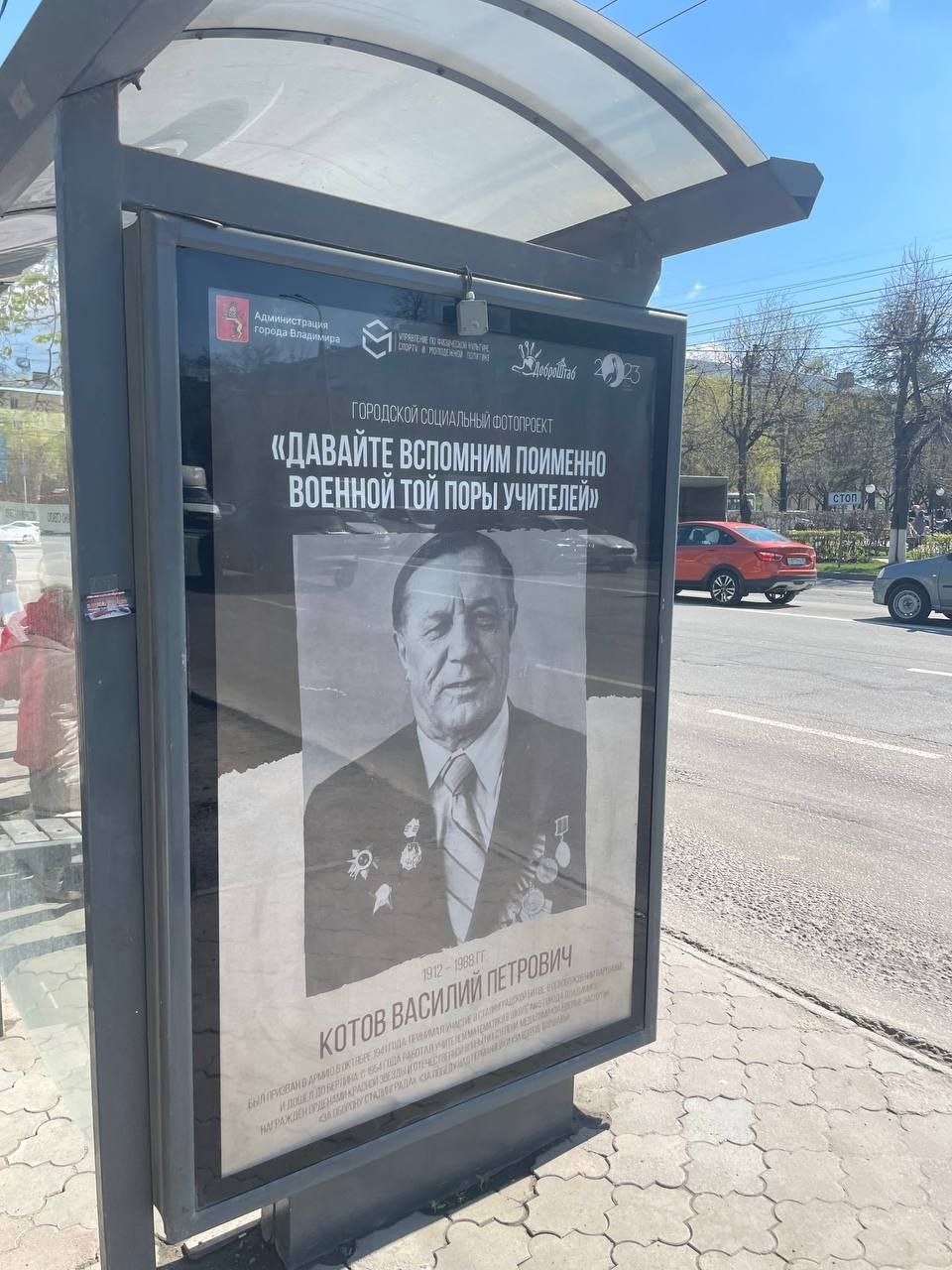 Во Владимире остановки общественного транспорта украсили портретами учителей военных лет