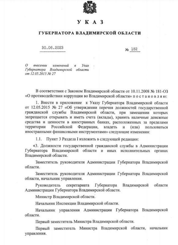 Александр Авдеев подписал указ, согласно которому чиновникам во Владимирской области запрещается открывать счета в иностранных банках.
