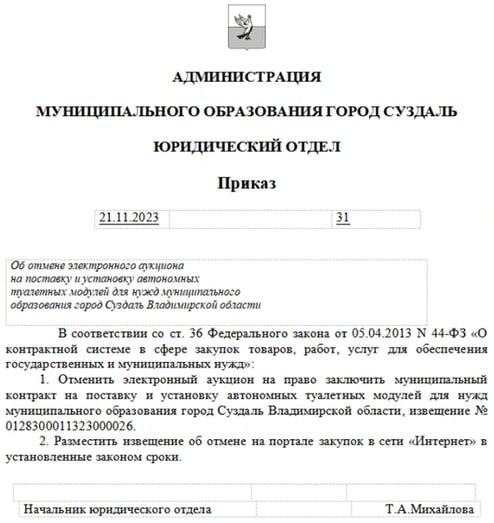 Стало известно, что власти Суздаля отказались ставить в городе 4 туалета за 18 миллионов рублей - был опубликован соответствующий документ.