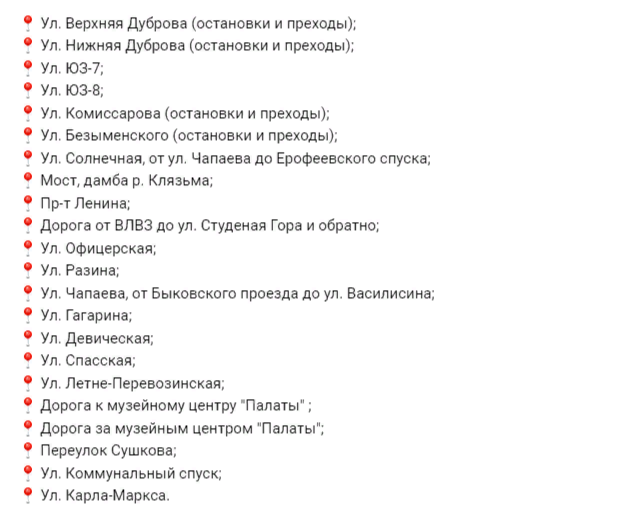 Список улиц: