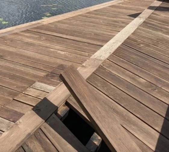 Однако, через год набережная начала разваливаться, создавая неприглядный вид и создавая затруднение при движении пешеходов. Доски буквально выпадали из общего ряда.