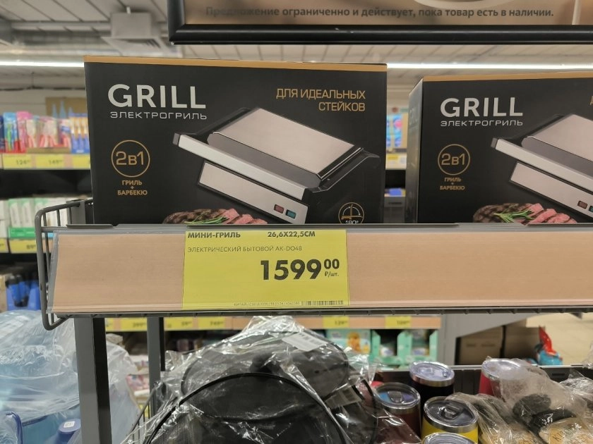 Отдельная любовь — электрический мини-гриль. Мы с мужем любим стейки, а этот малыш (очень компактный, 26х22 см) на маленькой кухне места почти не занял. Жарит отлично, и цена всего 1599 рублей. Дорогие грили теперь отдыхают на полке.