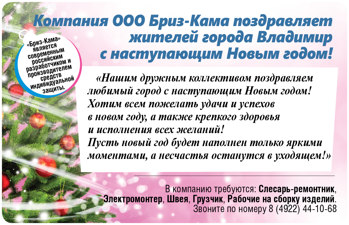 Реклама. Рекламодатель ООО "Бриз-Кама" ИНН: 3328418490 ERID: LjN8Jz3QN